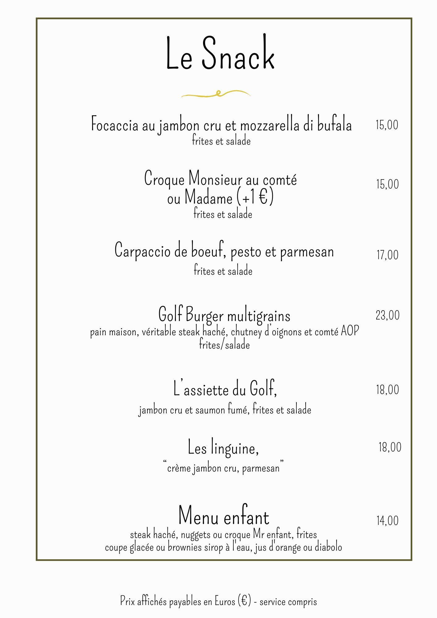 Ouvert à tous, golfeurs ou non, Le Restaurant du Golf vous propose son cadre reposant et verdoyant avec sa vaste terrasse panoramique dominant le parcours. Ambiance conviviale d’un club de golf.